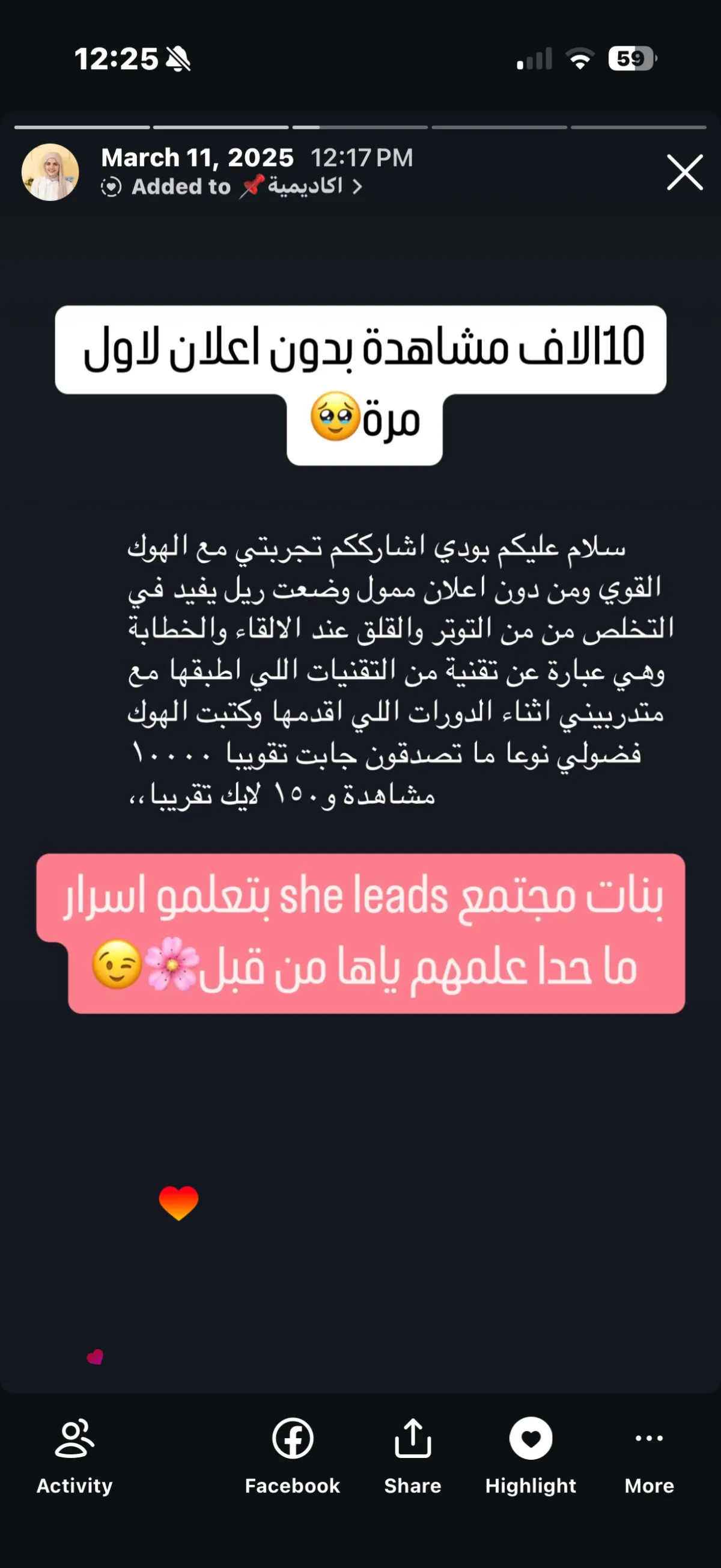 كما قمت بتعليم أكثر من 800 رائدة أعمال، وأطلقت برامج تدريبية من أوائل البرامج في الوطن العربي، لأنني أؤمن أن أي امرأة يمكنها أن تبني مشروعًا ناجحًا حين تفهم التسويق وتستخدمه بطريقة صحيحة.