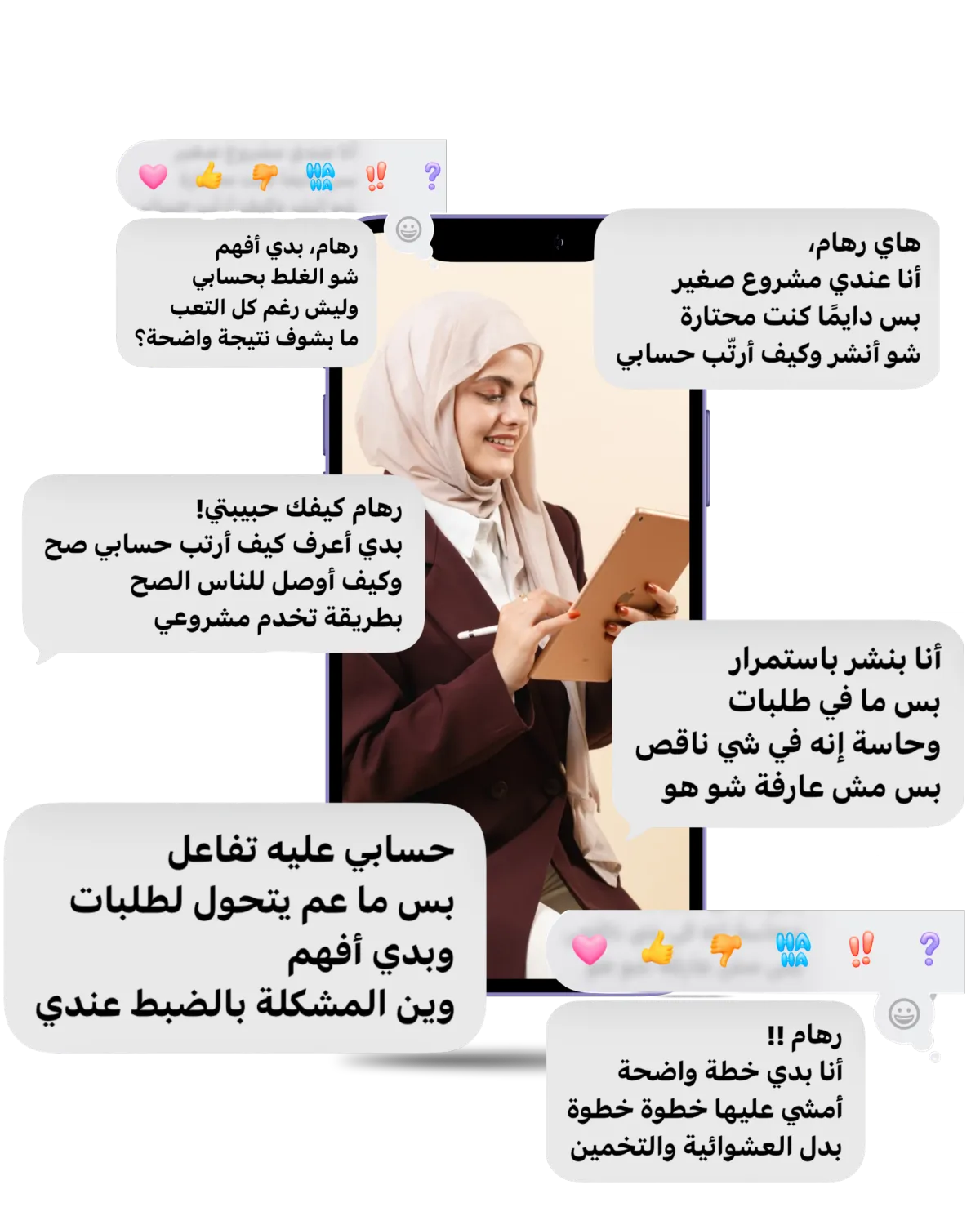 أنا مختصة في التسويق وصناعة المحتوى، ومؤسسة مشروع SheLeads، وهي منصة رقمية تساعد النساء على فهم التسويق، ترتيب حساباتهن، وبناء حضور رقمي واضح يخدم مشاريعهن.